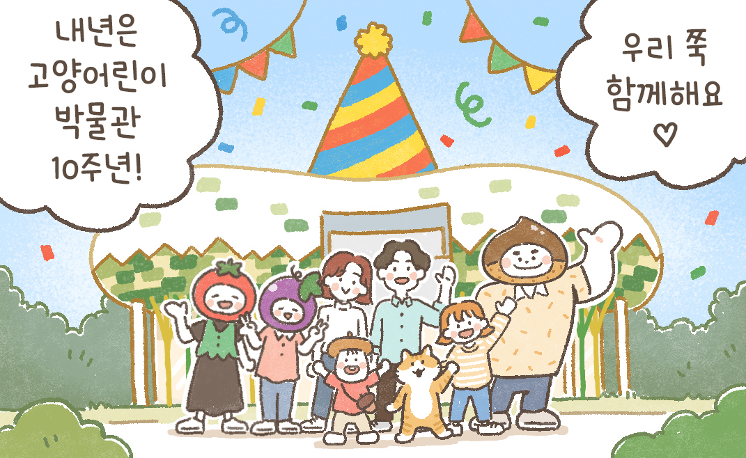 고양어린이박물관이 어느덧 10살 생일을 맞이합니다! 고양어박과 함께해 주신 모든 분들께 진심으로 감사드립니다♥ 내년의 고양어박은 아장아장 아기부터 할머니·할아버지까지 온 가족이 함께 즐기는 프로그램, 지금보다 더욱 풍성한 전시·교육·행사로 꽉꽉 채워 돌아올 예정이에요. 기대해 주세요! 그리고... 와글레터 구독자분들께만 살짝 알려드리는 비밀 소식★ 내년에는 고양어린이박물관의 새로운 캐릭터가 깜짝 등장할 거예요! (아직은 비밀이에요, 우리끼리만 쉿-!)